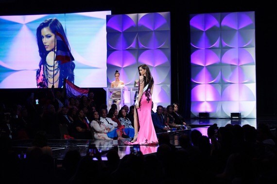 แอตแลนตา สหรัฐอเมริกา, 6 ธันวาคม 2562 (ตามเวลาท้องถิ่นสหรัฐฯ) – การประกวด Miss Universe 2019 ในรอบ Preliminary and National Costume Competition! ที่ไทเลอร์ เพอร์รี่ สตู ดิโอส์ (Tyler Perry Studios) แอตแลนตา สหรัฐอเมริกา สาวงามตัวแทนจาก 90 ประเทศทั่วโลก เฉิดฉายมั่นใจ แสดง Confidently Beautiful สำหรับสาวไทย ฟ้าใส ปวีณสุดา ดรูอิ้น Miss Universe Thailand 2019 อวดโฉมในชุดราตรียาวโทนสีชมพู แบรนด์ Prapakas อย่างสง่างาม