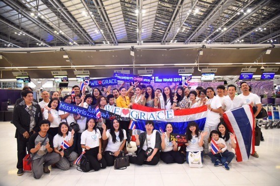 เรียกว่ากำลังใจเกินร้อย สำหรับ เกรซ-นรินทร ชฎาภัทรวรโชติ มิสไทยแลนด์เวิลด์ 2019 ที่เตรียมบินลัดฟ้าข้ามทวีปทำหน้าที่เป็นตัวแทนประเทศไทย เข้าร่วมประกวดเวทีระดับโลก “มิสเวิลด์ 2019” ณ กรุงลอนดอน ประเทศอังกฤษ โดยออกเดินทางเวลาเที่ยงคืนสิบห้านาที ด้วยสายการบินไทยชั้น Business Class เที่ยวบิน TG 910 กรุงเทพ-ลอนดอน งานนี้มีแฟนนางงาม ครอบครัว ร่วมให้กำลังใจเดินทางมาส่งเนืองแน่น