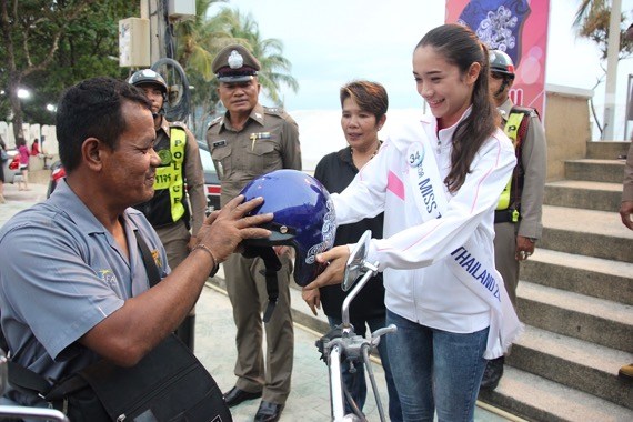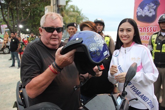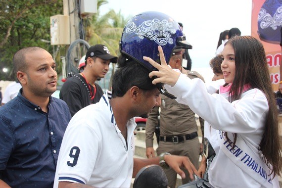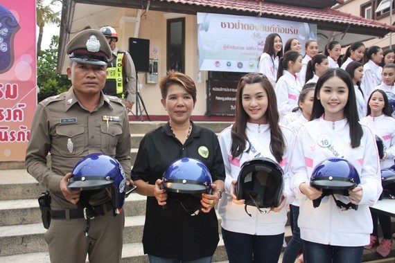 ปิดท้ายสาววัยทีนได้ร่วมรณรงค์ความปลอดภัยบนท้องถนน และไปมอบหมวกกันน็อคพร้อมด้วย ‘ผการัตน์ ตามชู’ รองประธานมูลนิธิพัฒนาป่าตอง โดยมี ‘พ.ต.ท.เลิศ โพธิ์ขวาง’ สวป.สภ.ป่าตองเป็นผู้รับมอบ เพื่อนำไปใช้ในกิจกรรมของทางสถานีตำรวจฯ ขับขี่ปลอดภัยใส่หมวกกันน็อค ในโครงการ ภูเก็ตปลอดภัย สวมใสหมวกกันน็อก รณรงค์สวมหมวกนิรภัย 100% ซึ่งมี่ประชาชนจำนวนมากร่วมกิจกรรมครั้งนี้