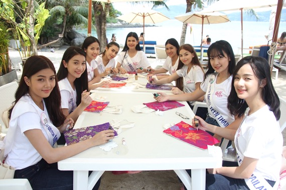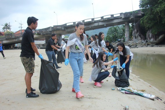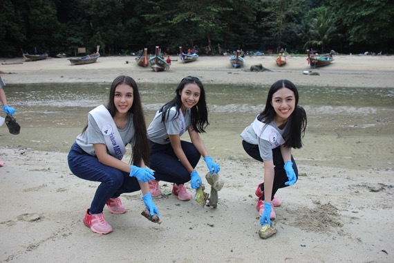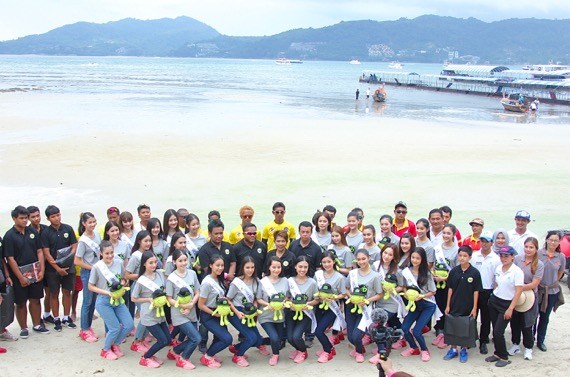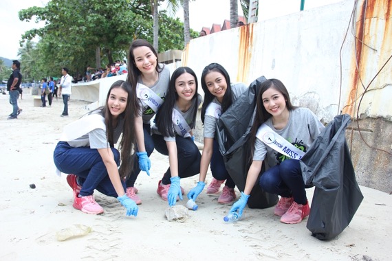 และในช่วงเวลา 13.00 น. ทั้ง 40 สาววัยทีนได้ลงพื้นที่ร่วมทำกิจกรรอนุรักษ์สิ่งแวดล้อมทางทะเล เก็บขยะชายหาดเพื่อรักษาธรรมชาติอันสวยงามของหาดป่าตอง สถานที่เที่ยวสำคัญของภาคใต้ โดยมี ‘ผการัตน์ ตามชู’ รองประธานมูลนิธิพัฒนาป่าตอง ให้การต้อนรับพร้อมร่วมกิจกรรมครั้งนี้ ซึ่งขยะบริเวณหาดป่าตองเป็นขยะที่มาจากการทิ้งขยะลงทะเลซึ่งบางส่วนเป็นขยะที่พัดพามาจากหลายพื้นที่โดยรอบ การเก็บขยะชายหาดเป็นหนึ่งในโครงการสำคัญที่ทาง ‘มูลนิธิพัฒนาป่าตอง’ ได้ร่วมกับพี่น้องในพื้นที่ป่าตองร่วมกันทำความสะอาดชายหาดมาโดยตลอดอย่างต่อเนื่อง