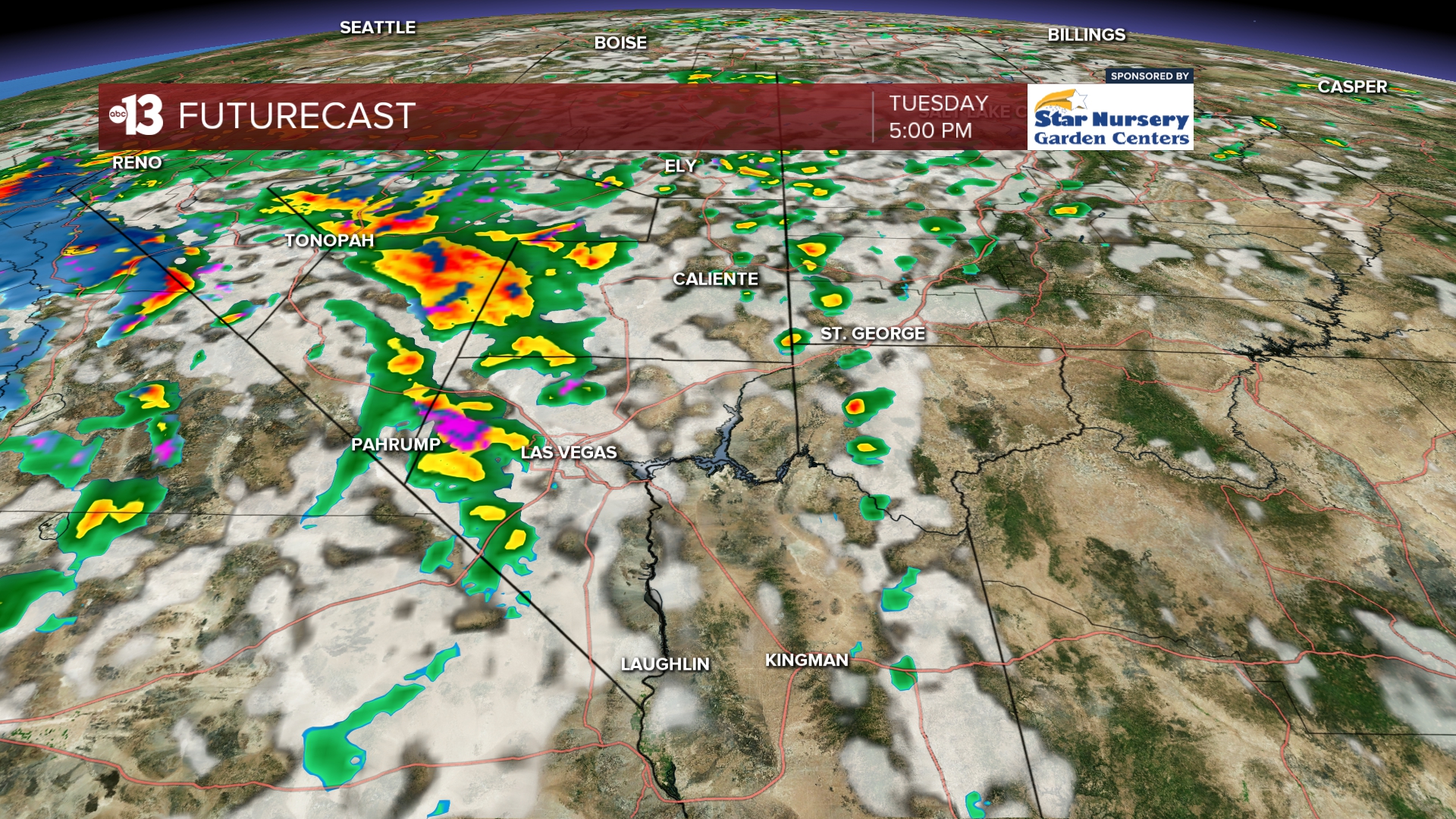 Rain and wind-blown snow are expected in the Spring Mountains, with a dusting above 7,000 feet (Mt. Charleston), 2″ above 8,000 feet (Lee Canyon), and 4″ above 9,000 feet.