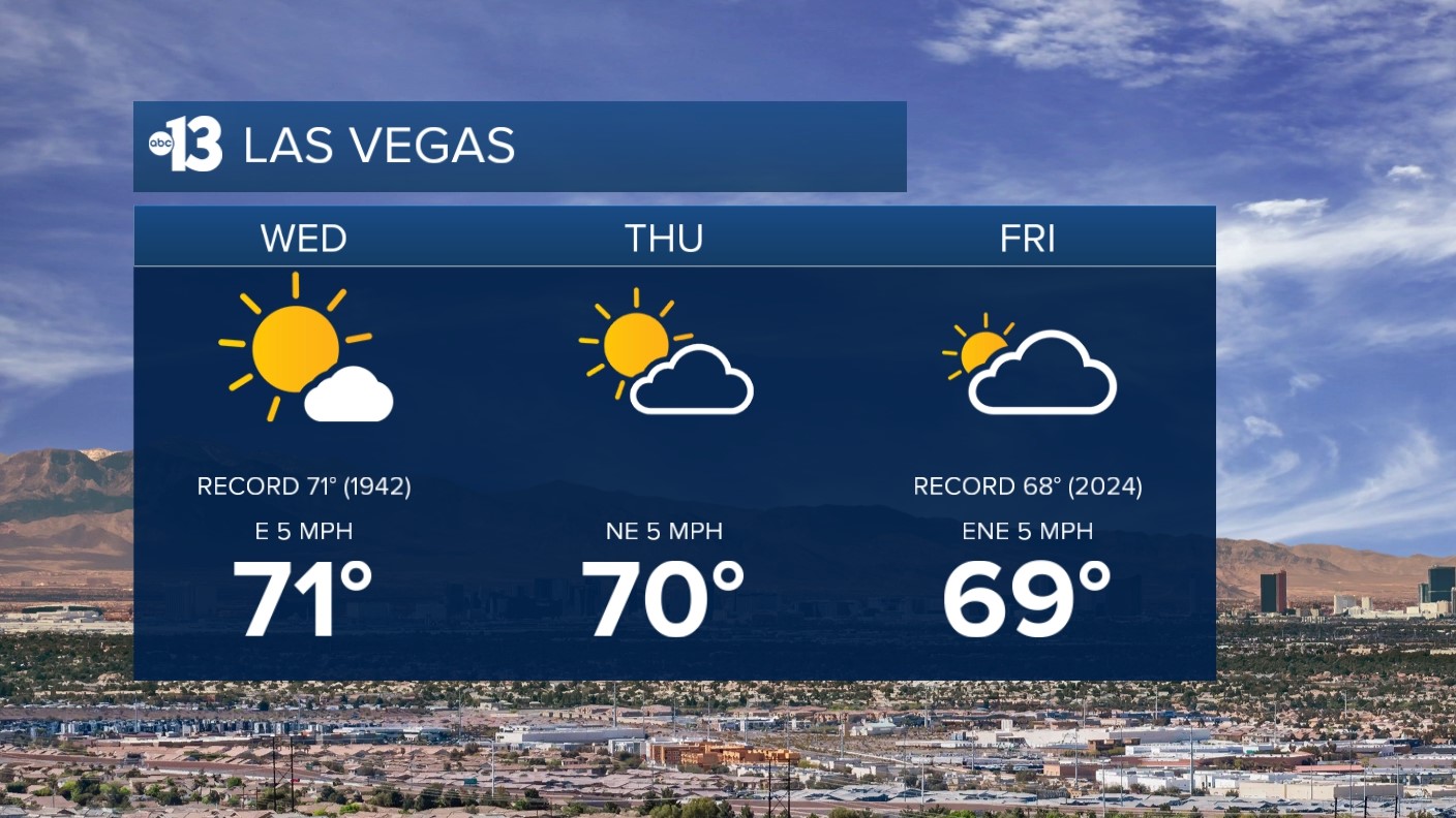 AFTERNOON: Mostly sunny with a high of 71 in Las Vegas (tying the record from 1942).