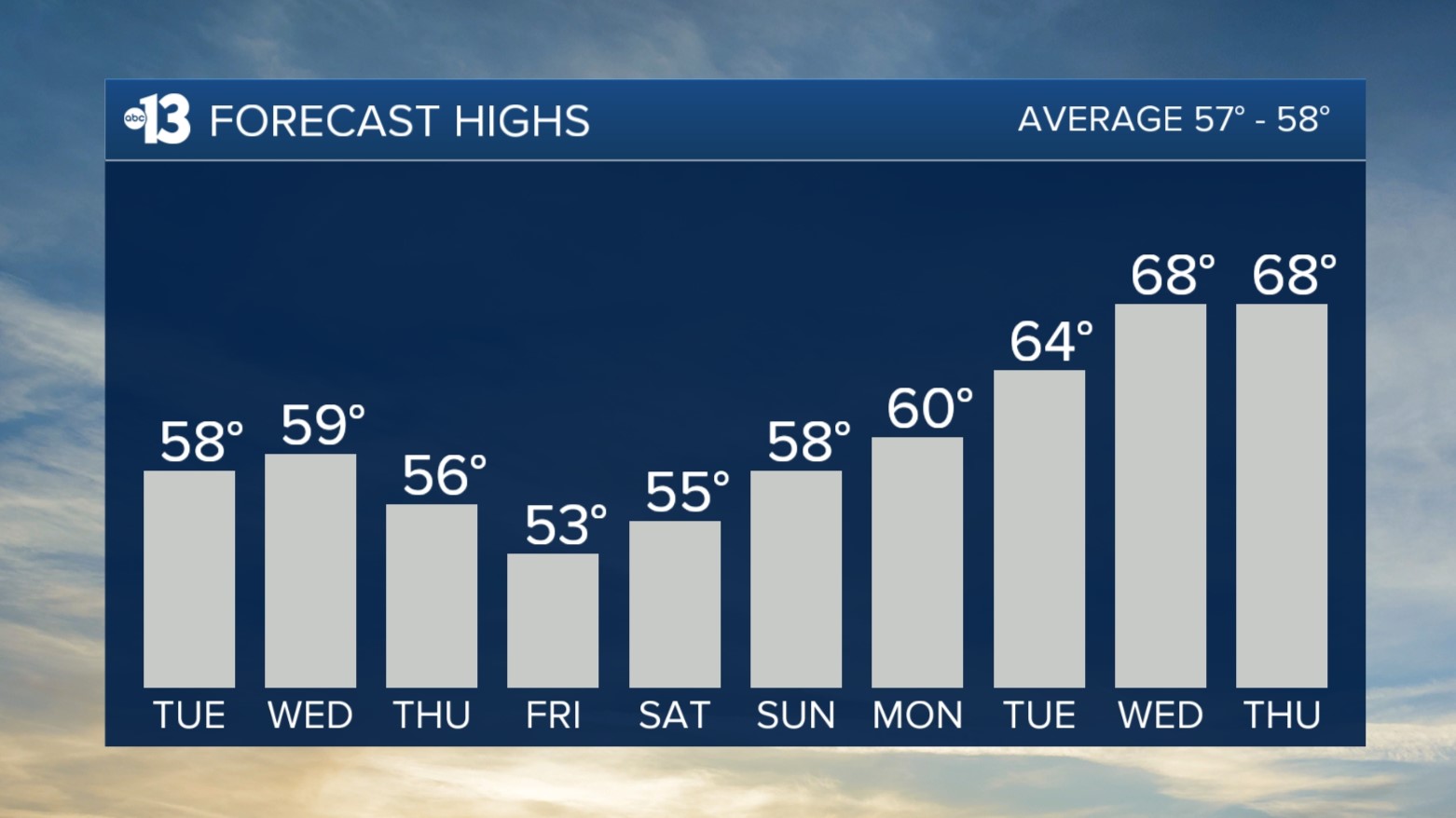 MORNING: Mostly cloudy and in the 40s.