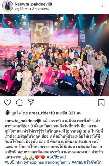 จนกลายเป็นภาพความประทับใจที่ใคร ๆ หลาย ๆ คนก็อยากบันทึก และจดจำตลอดกาล จึงทำให้อินสตาแกรมของเหล่าผู้จัด ผู้กำกับ และดารานักแสดงทุกรุ่นของช่อง 3 เต็มไปด้วยภาพความประทับใจ พร้อมกับแคปชั่นสุดซึ้งที่กลั่นออกมาจากใจจริงของทุกคน