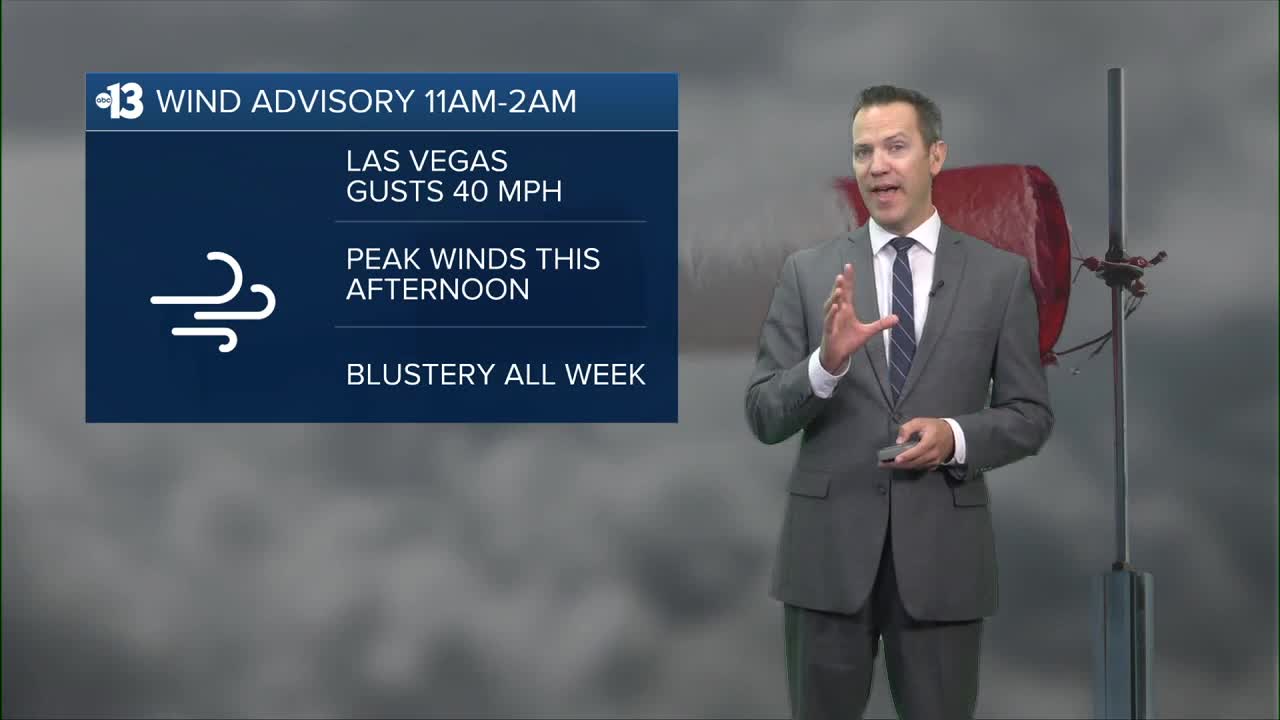 Thursday is mostly sunny with upper 50s at sunrise and highs back to the upper 70s in the afternoon. Expect southwest winds at 20-30 mph.