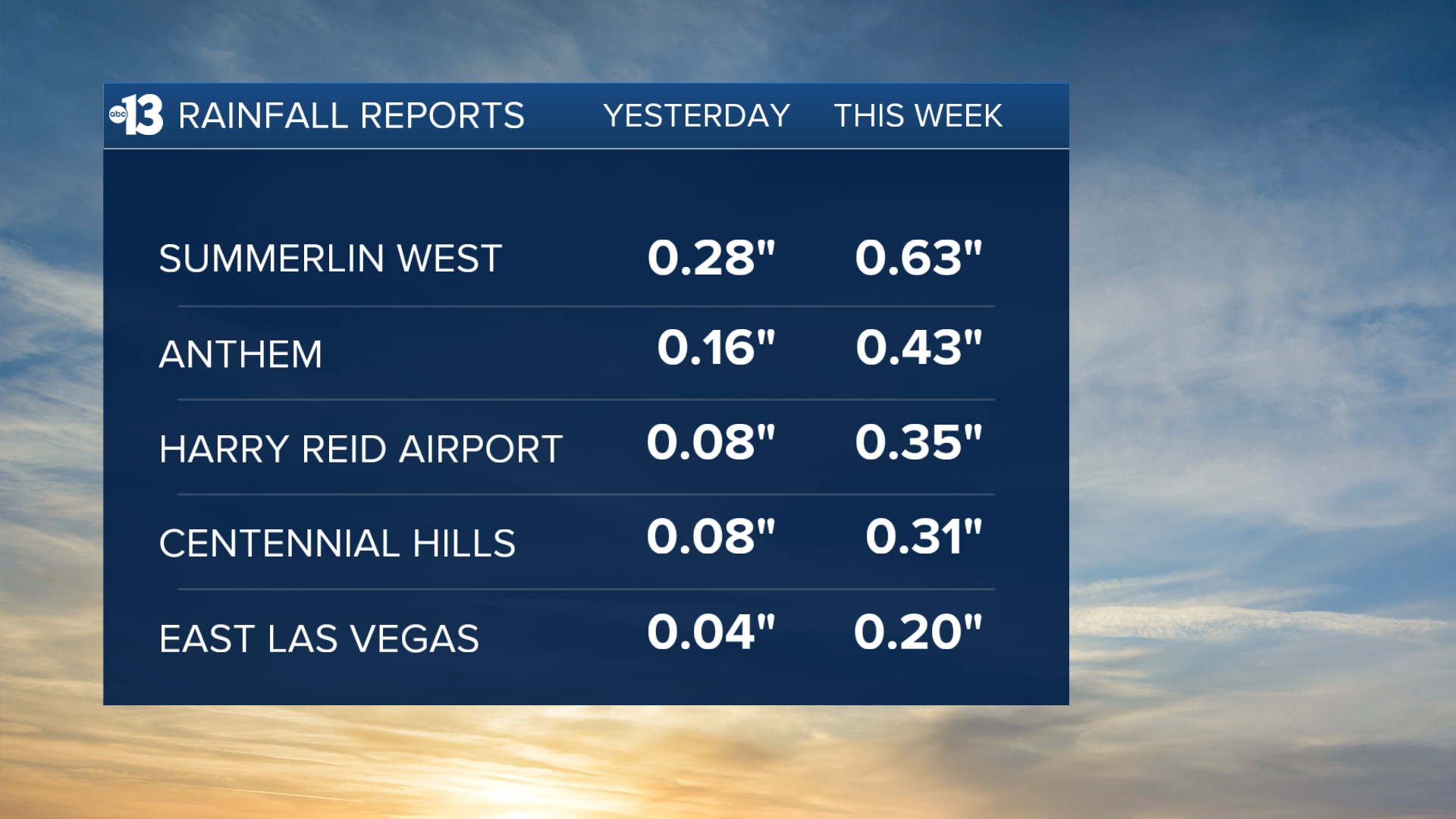 TONIGHT: Clearing sky late, lows in the mid 30s around Las Vegas with 5-10 mph breezes.